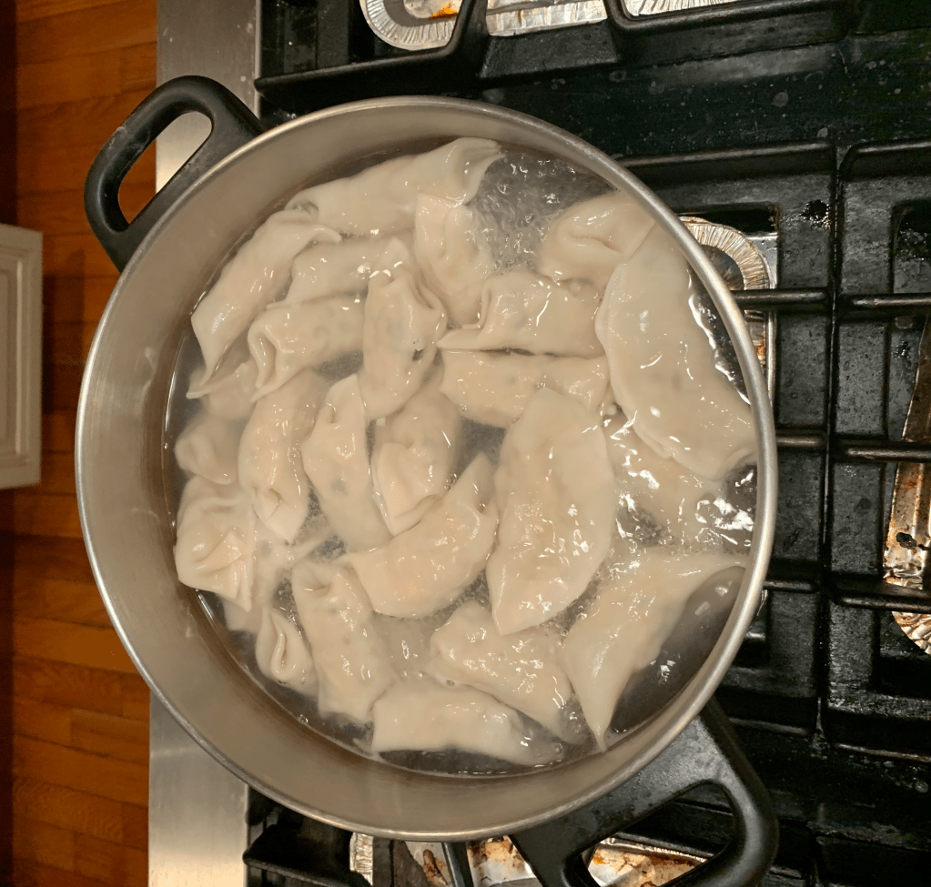 - Place 20 dumplings into the boiling water. Turn the flame to medium, continue cooking.
