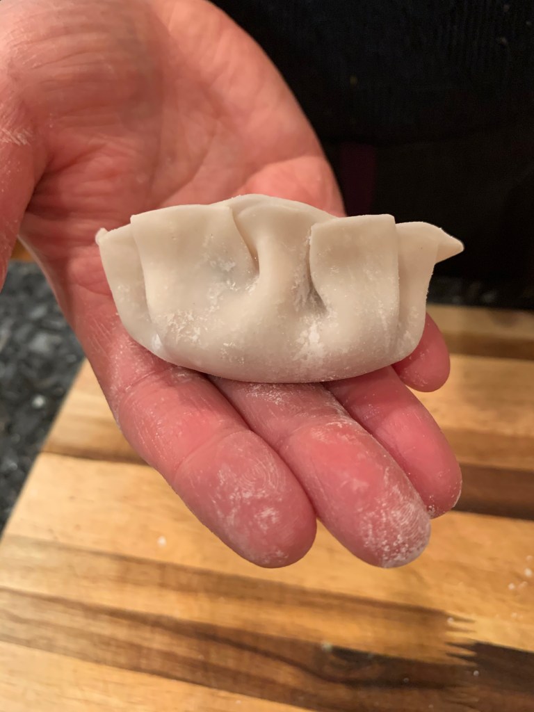 - Once you have sealed the dumpling, firmly press the pleated side with your fingers to make sure the dumpling is well sealed.