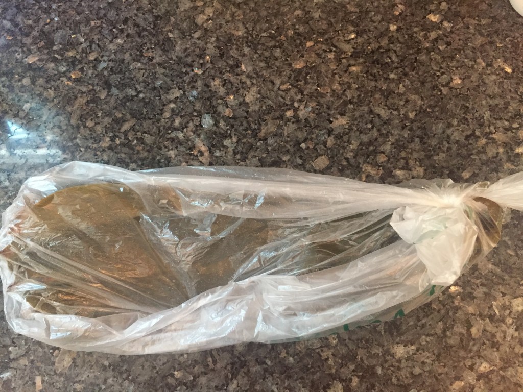 Carefully fold the top leaves over the rice, fold in the sides, and fold down the extra part of leave.