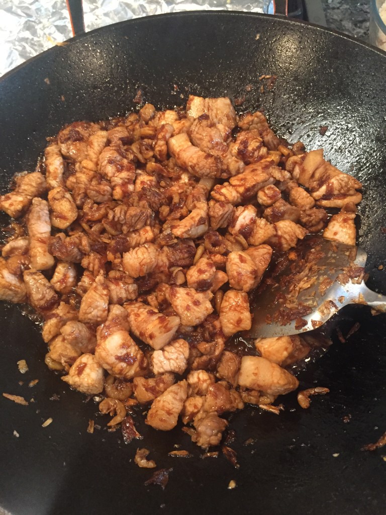 - 1 lb. pork belly, so fatty that the oil smothers the rice