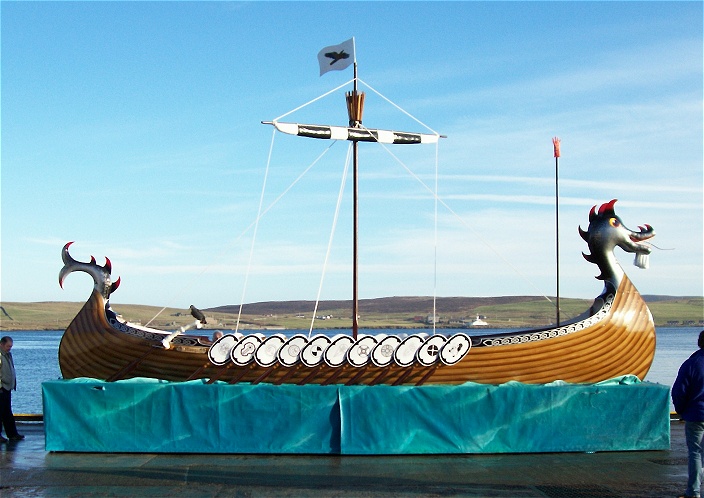 The name Up Helly Aa (Up Holy Day) refers to the twelve fire festivals that are celebrated around Shetland to mark the end of the holiday season. One of these festivals takes place in the village I grew up in called Cullivoe located on an island of Shetland called Yell. Up Helly Aa consists of a viking squad, a galley, guizers and burning torches. Every year one man within the community is elected as the Jarl (the head viking). It is an honour to be the Jarl and a lot of time and money is spent in preparation of the squad’s costumes (commonly made from seal skins and feathers) along with their galley. The galley is built in secret and designed to the preferences of the Jarl but always has the signature dragons head proudly at the forefront. The Chinese dragon boat festival is comparable to this. However, unlike the Chinese dragon design which has been handed down for thousands of years. The Up Helly Aa version is more cartoonish and may have been inspired by the Chinese dragon more than the actual traditional Nordic viking ship.