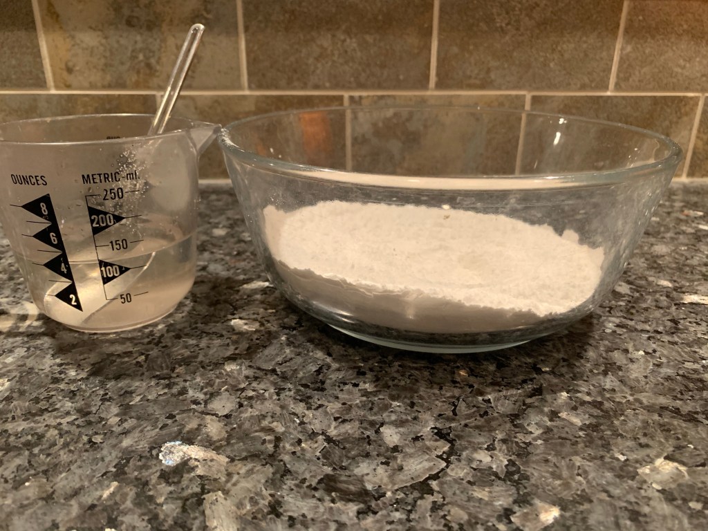 2 In a big bowl, mix the rice flour, glutinous rice flour, and salt.