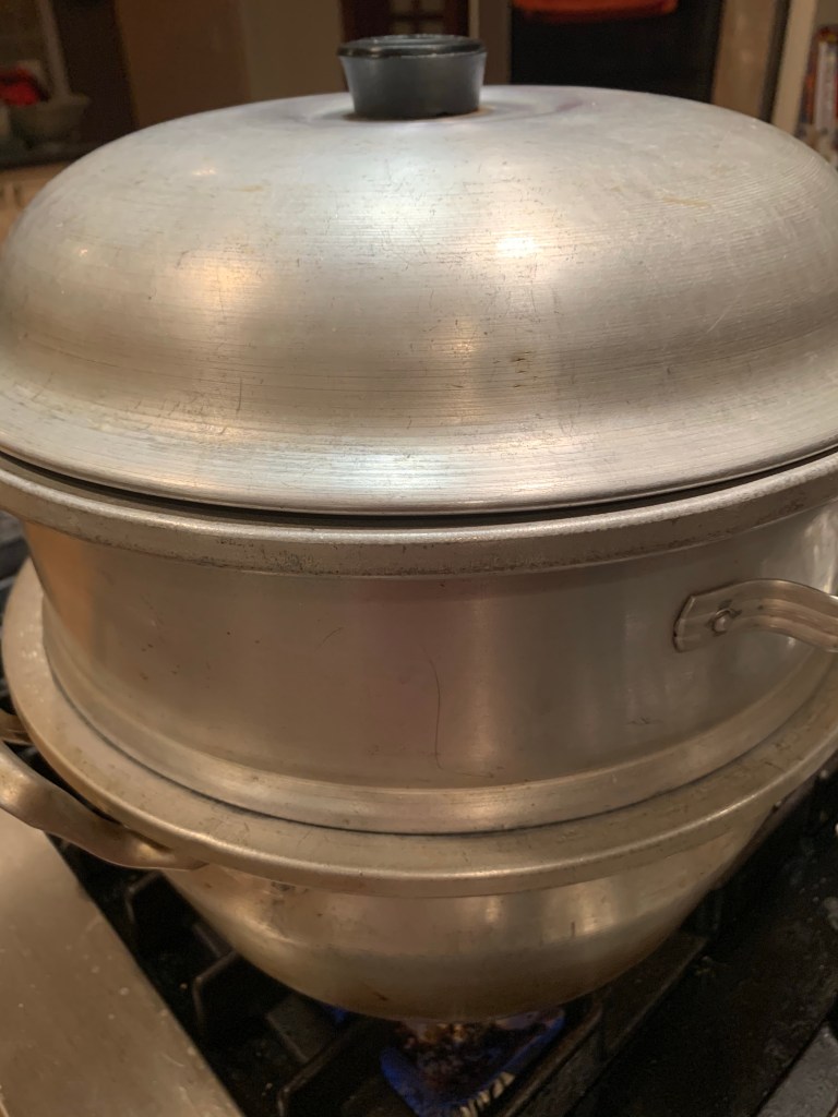 11 Place the bamboo steamer into the bigger steamer, steam for 20 minutes.